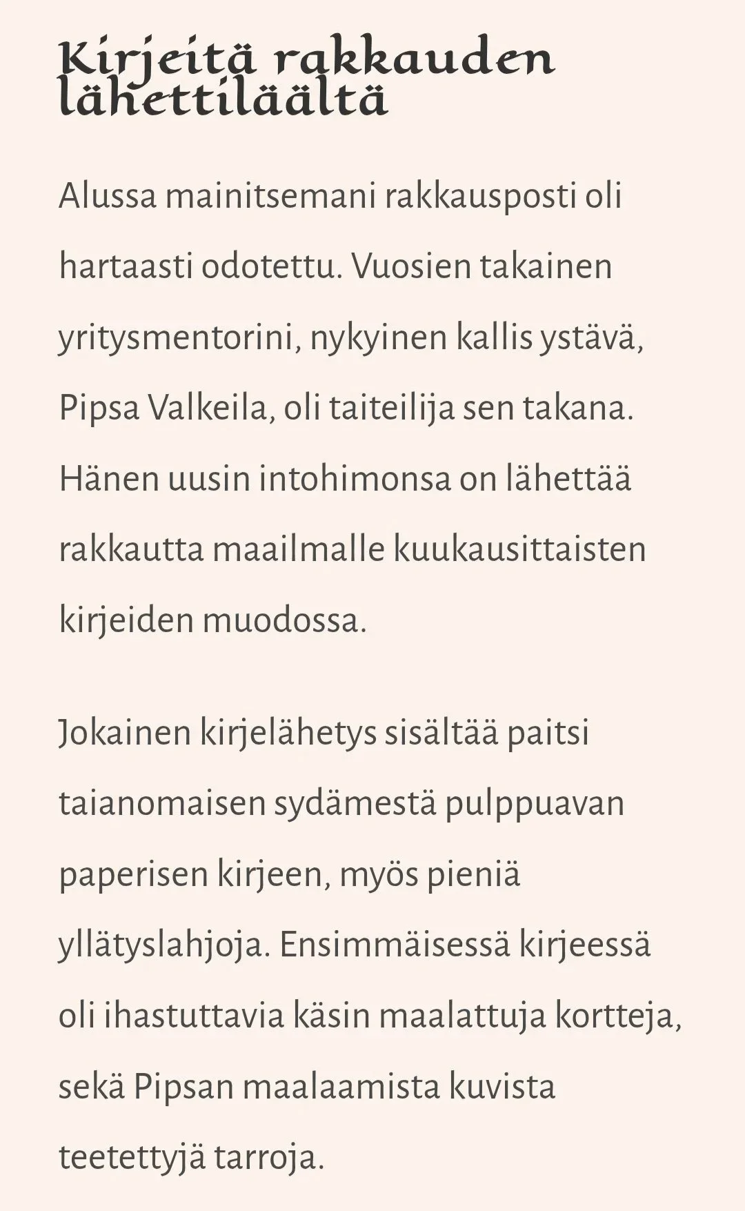 Yrittäjyys on minulle rakkauden tuomista näkyväksi - siksi kirjoitan näitä kirjeitä. Kiitos, kun olet täällä. ❤️